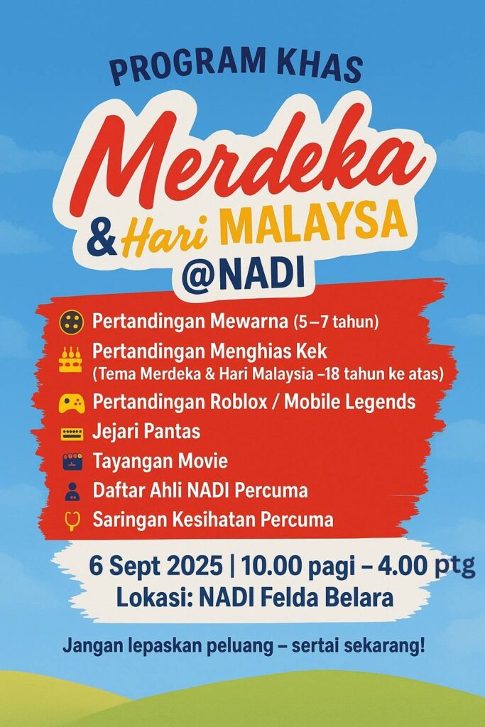 Jom raikan semangat Merdeka & Hari Malaysia bersama kami di NADI Felda Belara! 🇲🇾✨