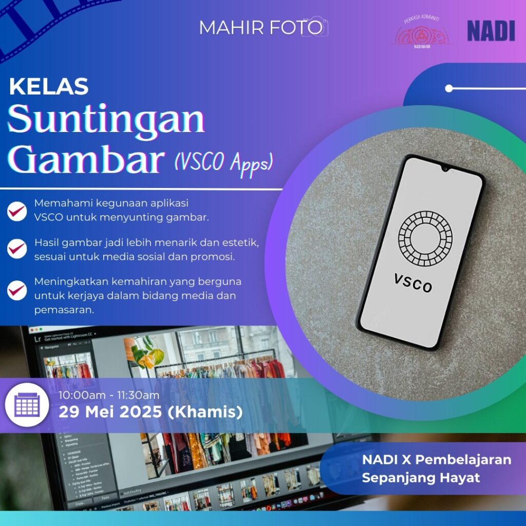 Jom sertai kelas Suntingan Gambar (VSCO Filter) khas untuk semua peringkat umur! π